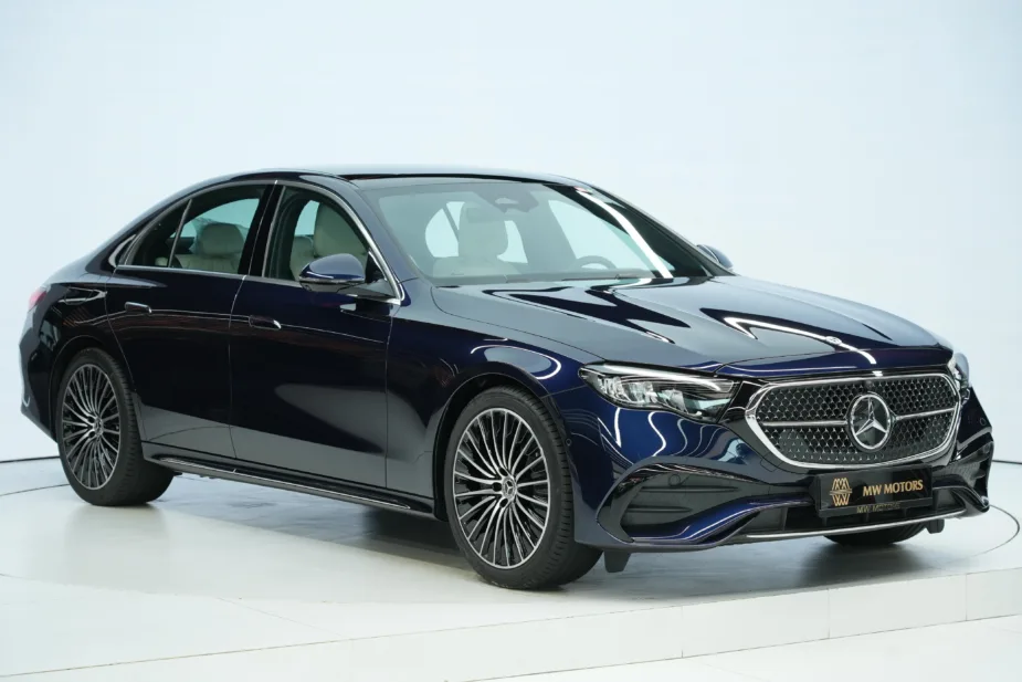 The 2026 Mercedes-Benz E 200 AMG Line stands out with its bold, sporty proportions and signature AMG styling. A striking illuminated radiator grille, sculpted bodywork, and expressive LED lighting create an unmistakable road presence.