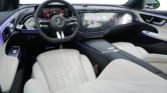 The 20-inch AMG multi-spoke alloy wheels and panoramic sliding sunroof add to the vehicle’s dynamic appeal. Standard exterior highlights include Adaptive Highbeam Assist, electrically folding mirrors, KEYLESS-GO, and HANDS-FREE ACCESS for convenient boot operation.