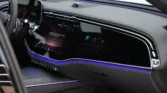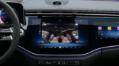 The E 200 uses the MBUX Superscreen with a 12.3-inch central display and OLED passenger display. Key functions include MBUX Augmented Reality Navigation, Head-up Display, Apple CarPlay, Android Auto, wireless charging, and 5G connectivity. The car also features a fingerprint sensor, Digital Vehicle Key preinstallation, and Mercedes me connect support.